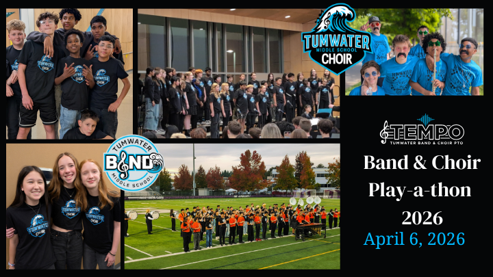 Welcome to the 3rd Annual Tumwater Middle School Band & Choir Play-a-thon, brought to you by TEMPO! This fundraiser benefits the band and choir programs at our school to ensure all students have access to superb music education.